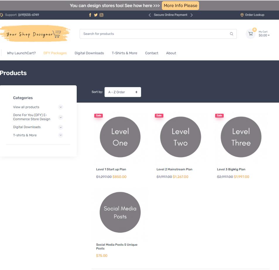 Usingclient'sbranding,logos,andtaglinestocreatea beautifulonlineshoppingexperiencealreadyfilledwithready tosellproducts. Anyinquiriesforaprofessionally builtstorebyYourShop Designercanbereachedat YourShopDesigner.com.