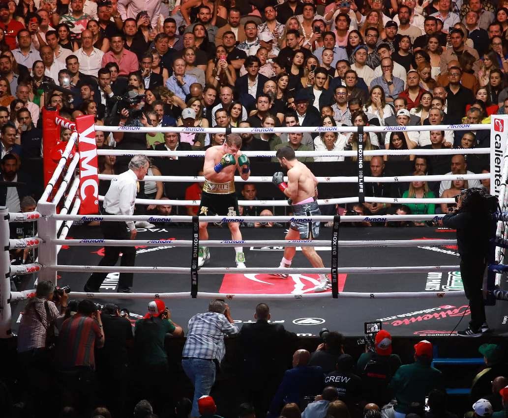 campana de inicio, temas como Cielitolindose escuchaban entre los coros de la gente, se dieron además pulseras de luz que encendían a al iniciar cada round, en los que había apoyo, aplausos y gritos, pero todas las esperanzas estaban puestas en este boxeador, “El Canelo Álvarez”, que sí es profeta en su tierra y que hace 12 años no boxeaba en su ciudad, que lo recibió con los brazos abiertos. Tras sonar la campana final del doceavo round, la decisión decisión estaba tomada y fue para “El Canelo”, alegrando el ambiente con mariachi y lo mejor, iluminando el cielo con pirotecnia espectacular, pantallas con imágenes del campeón y que al final, después de la pela no dudó en decir. “Yo cuando era niño soñé con ser boxeador y llegar lejos, nunca pensé que a este nivel, pero lo logré y sí, hay Canelo Álvarez para rato”.