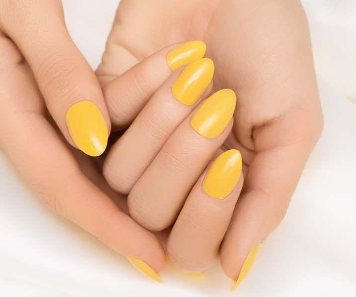 Si deseas un look divertido y audaz para tus uñas, el amarillo canario es para ti. Es un tono vibrante y juvenil que grita verano. Además, los tonos amarillos pueden reducir el aspecto de manchas y decoloraciones ya que la atención se centra en el tono de las uñas.