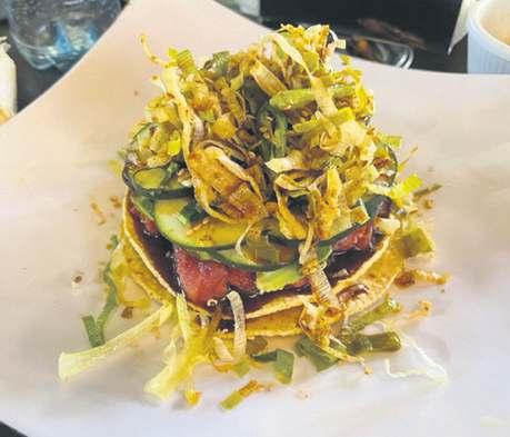 Por último pedí la tostada de atuncito serrano $90 y es que no era broma que estaba súper bueno el atún y la verdad quise comer más de él, esta tostada la preparan con salsa de anguila, soya, y aceite de ajonjolí, haciendo un preparadito, que puedes pedir aparte y tu bañar que fue mi caso. Le ponen doble tostada, como por si se aguada una cambie y sigas. El punchque le da el poro frito con el que coronan es verdaderamente especial, ya que su combinación es excepcional y vale mucho la pena. Pensé que estaría muy dulce por la salsa de anguila y fue por ello que pedí salsa aparte, pero no fue así, está muy bien equilibrada y de sabor digna para volver.