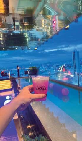Los invitados disfrutaron de un cóctel a su llegada y se tomaron fotos en la cabina Maestro Dobel, para luego escuchar un mensaje de bienvenida y conocer el concepto del rooftop, el cual está ubicado en el piso 14 del hotel, que ofrece un ambiente relajado y sofisticado con coctelería de autor, selección de vinos, destilados y cervezas, bocadillos gourmet y vistas de un espectacular atardecer. El lugar está abierto de 17:00 a 23:00 horas, donde hay música de DJ los jueves o viernes.
