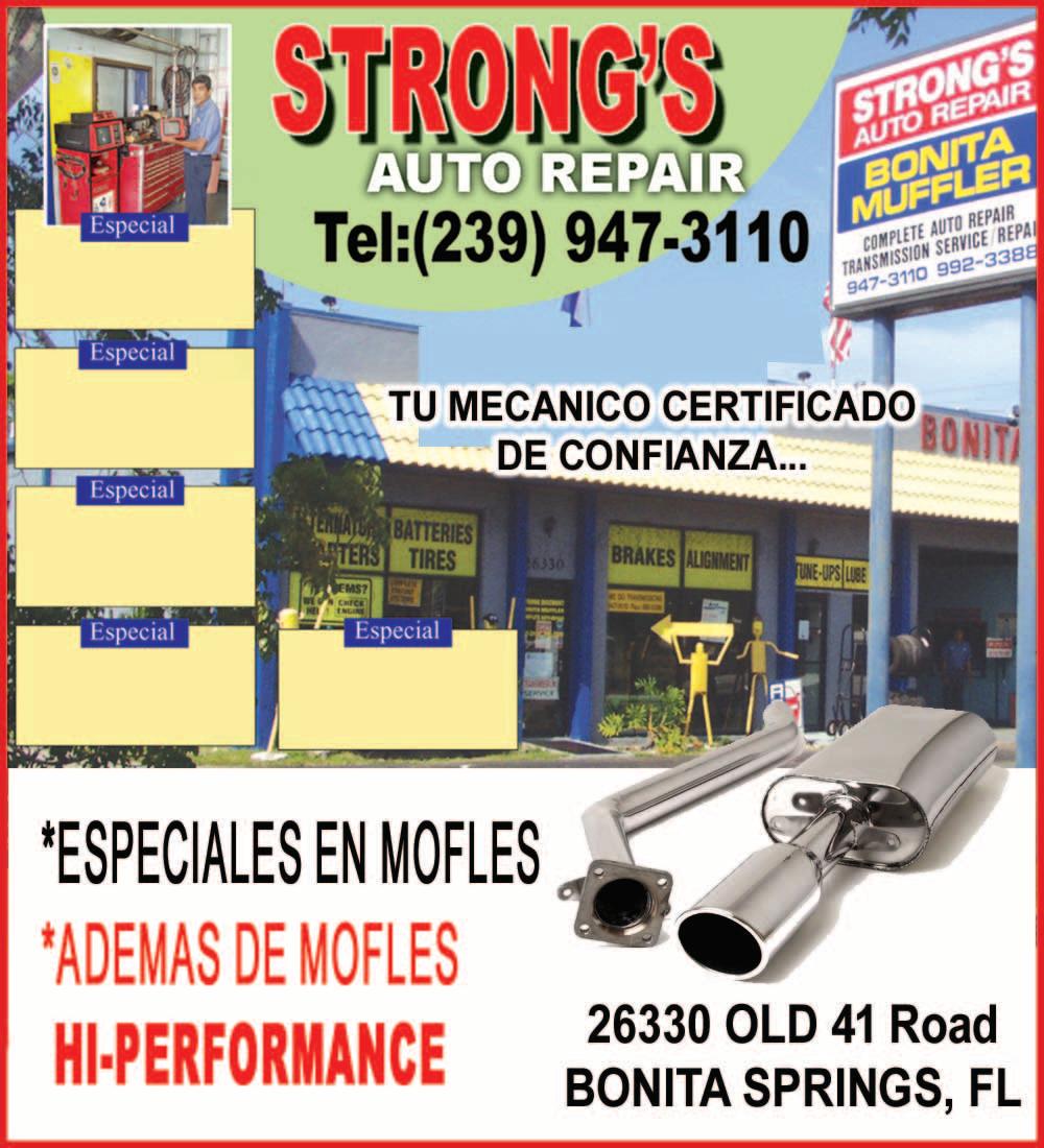 Nuestra dirección: 21481 S. Tamiami Trail Estero, Florida LLAMA PARA LLEVAR Tel: (239) 948-8300