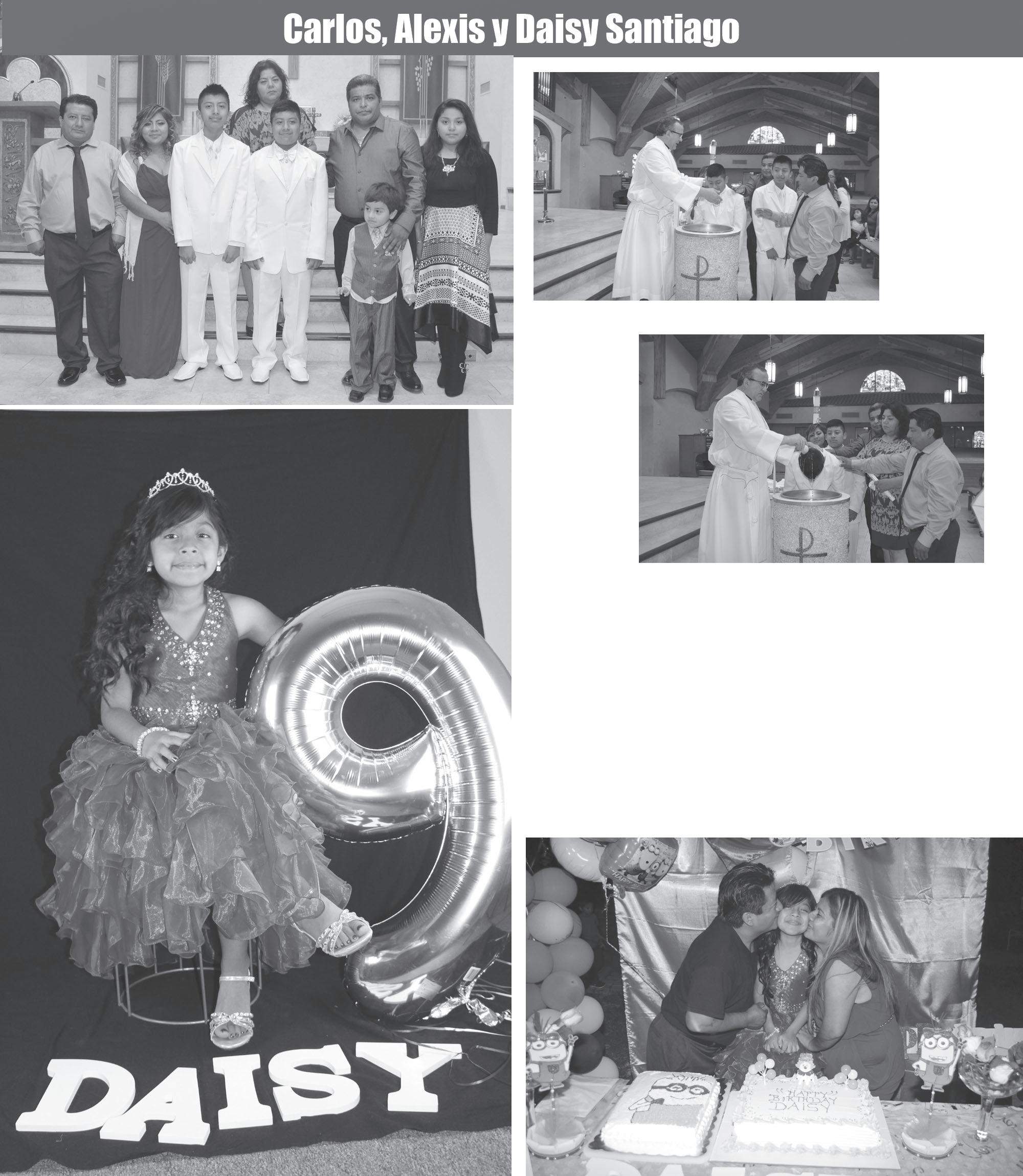 En el mes de diciembre, la familia Santiago de Bonita Springs celebró con doble fiesta a sus hijos Carlos, Alexis y Daisy con motivo del bautizo de los jovenes y el cumpleaños número nueve de la niña. Los orgullosos padres Victor e Irma organizaron tremendas fiestas para los chiquillos del hogar en compañía de familiares y amigos además de los respectivos compadres. ¡Felicidades Carlos, Alexis y Daisy!