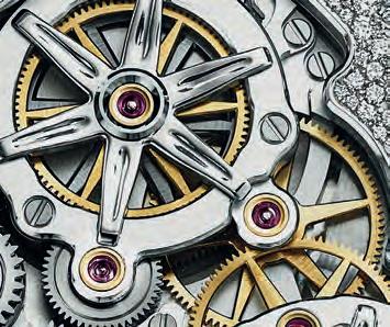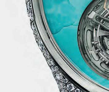 miento, manteniendo su funcionalidad y ofreciendo una perfecta legibilidad. El resultado es una esfera que se vacía con recortes geométricos que evocan el logotipo de la ‘doble Z’ de ZENITH de los 60. Las subesferas, en gris azulado en contraste, también están esqueletizadas. Por último, los índices de tipo bastón facetados aplicados y las agujas incorporan Super-LumiNova para favorecer la legibilidad.