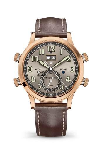 La tercera pieza, también dedicada a los viajeros, es 5520RG, el conocido como Alarm Travel Time de 2019 que conquistó a los coleccionistas por su estilo Pilot. Ahora esta pieza se viste en tono bicolor en caja de oro rosa y cuatro pulsadores de oro blanco, que además, se distingue por tener una carátula en gris con acabados soleil y negro ébano, donde resaltan de forma significativa las cifras arábigas aplicadas a mano. Las manecillas son de tipo espada en oro blanco antracitas realzadas con un revestimiento luminiscente. En la parte técnica hay que decir que esta pieza se impulsa por el calibre AL 30-660 S C FUS de cuerda automática que lo diferencia de cualquier otro reloj de las mismas características, ya que combina un sistema exclusivo de indicación de un segundo huso horario, conocido como Travel Time, con un mecanismo de alarma en 24 horas con martillo que golpea en un timbre, lo que lo convierte en un modelo Gran Complicación. Tres piezas únicas de Patek Philippe completamente revisitadas para aumentar el deseo por parte de los coleccionistas.