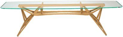 Homenaje a Carlo Mollino 1948 de Zanotta: tapa de cristal y estructura de roble.