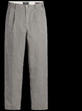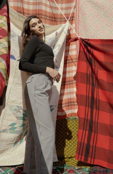 A la izquierda, suéter de cuello redondo de cachemira con banda blanca en contraste y pantalones de algodón. Todo de Hermès. A la derecha, gabardina relaxed fit impermeable de algodón, con cinturón estampado Monogram y forro polar, Herno; camisa de algodón, Xacus.