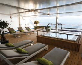 Haciendo un recorrido a la parte superior, los huéspedes disfrutan de las amenidades de Silversea ya sea en la alberca o los jacuzzis de hidromasaje, cruzando rumbo al Zagara Spa y sus servicios de acupuntura, baños de vapor y tratamientos infinitos, para terminar una velada en Panorama Lounge y Dolce Vita con música en vivo y cocteles que acompañan la ocasión.