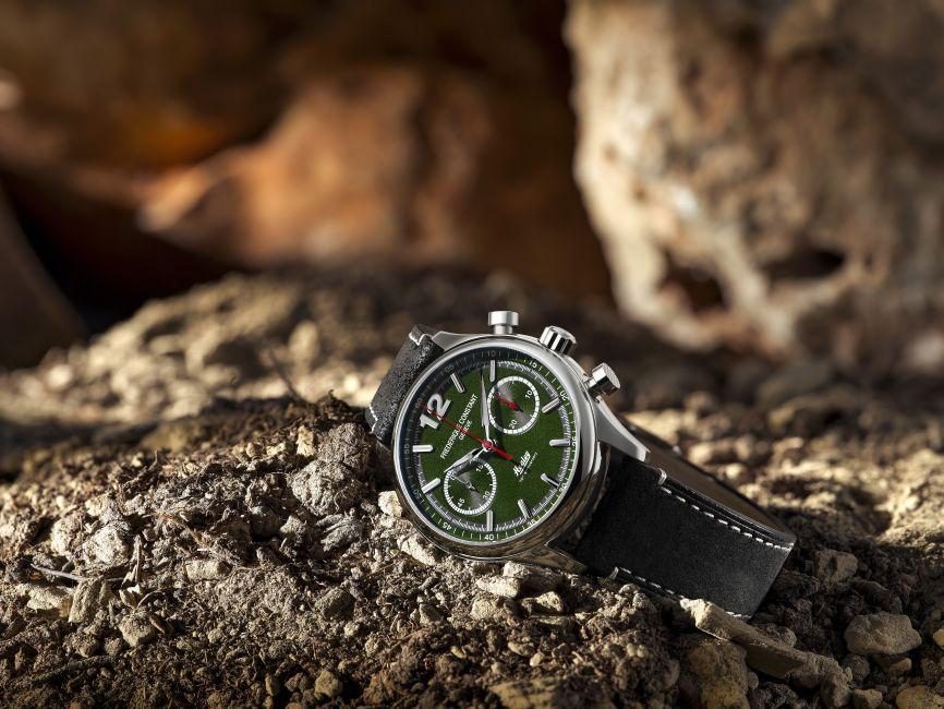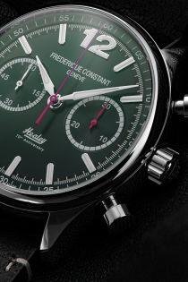 EL AUTO con las placas NOJ393 es uno de los últimos ejemplares existentes de la mítica asociación entre el fabricante de autos Austin Motor Company y el con ductor Donald Healey, por consecuencia es un volido sumamente buscado por los coleccionistas, para poner un ejemplo del frenético fanatismo vale la pena mencio nar que en 2011 este auto alcanzó la suma de 1 millón de euros, ¿el interés? Corrió como Auto Especial de Pruebas en las las 24 Horas de Lemans en 1953. Así desde esa prestigiosa carrera la firma AustinHealy se hizo de renombre, mismo que hoy es celebrado por la firma relojera Fre derique Constant con el lanzamiento de un reloj edición limitada para conmemo rar 70 años de un icono. La pieza de la que hablo es Vintage Rally Healey Chro nograph Automatic que en su carátula se viste con el tradicional English green – ver de inglés –que alguna vez uso el codicia do auto. Este nuevo guardatiempos llega
