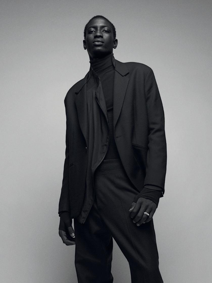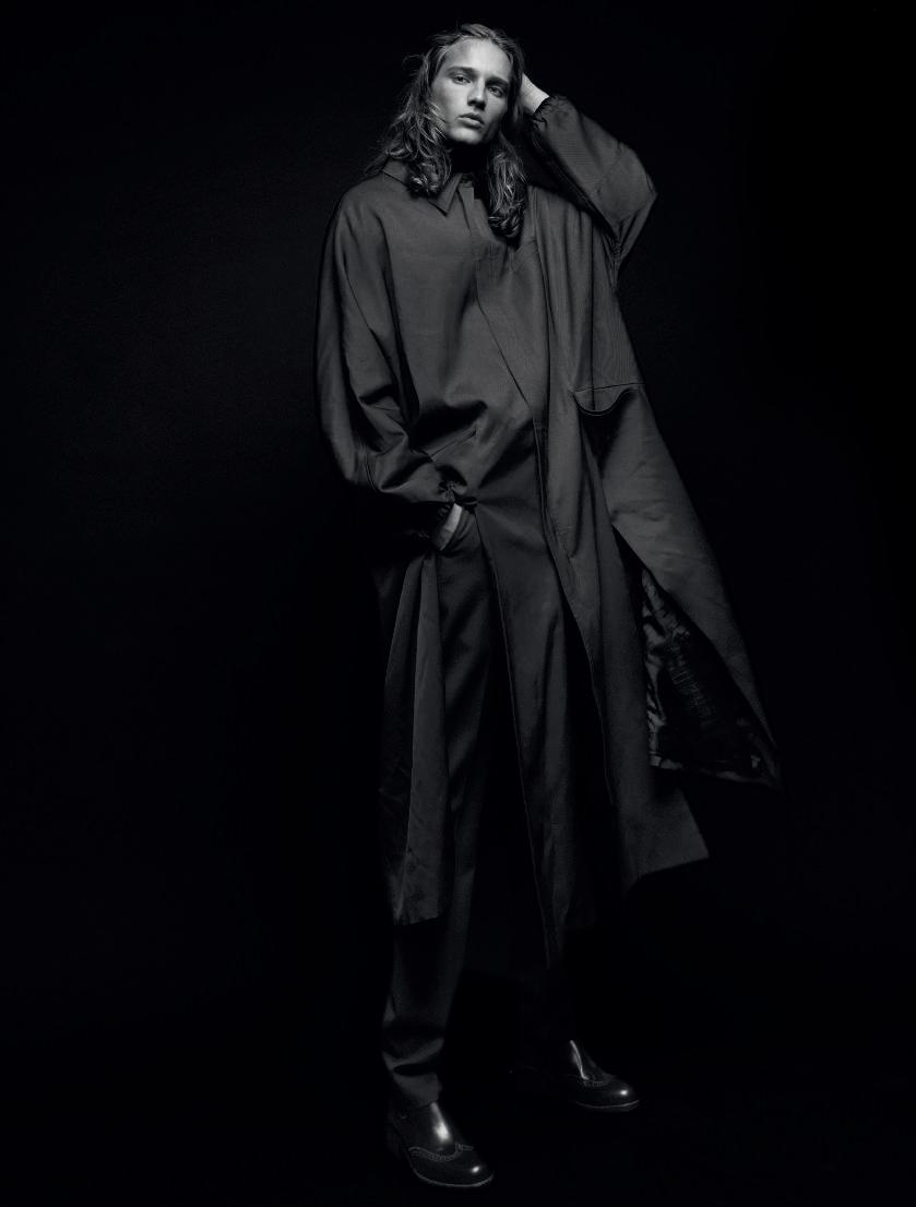 Abrigo oversize en tejido técnico negro, con cuello italiano y bolsillos laterales, pantalones de corte recto en mezcla de algodón y lana, botines de piel. Todo de Fendi. (Maquillaje de Matteo Bartolini con productos Hanacure, Veil Cosmetics, Balmain Hair Couture, Alterna Hair Care Italia).