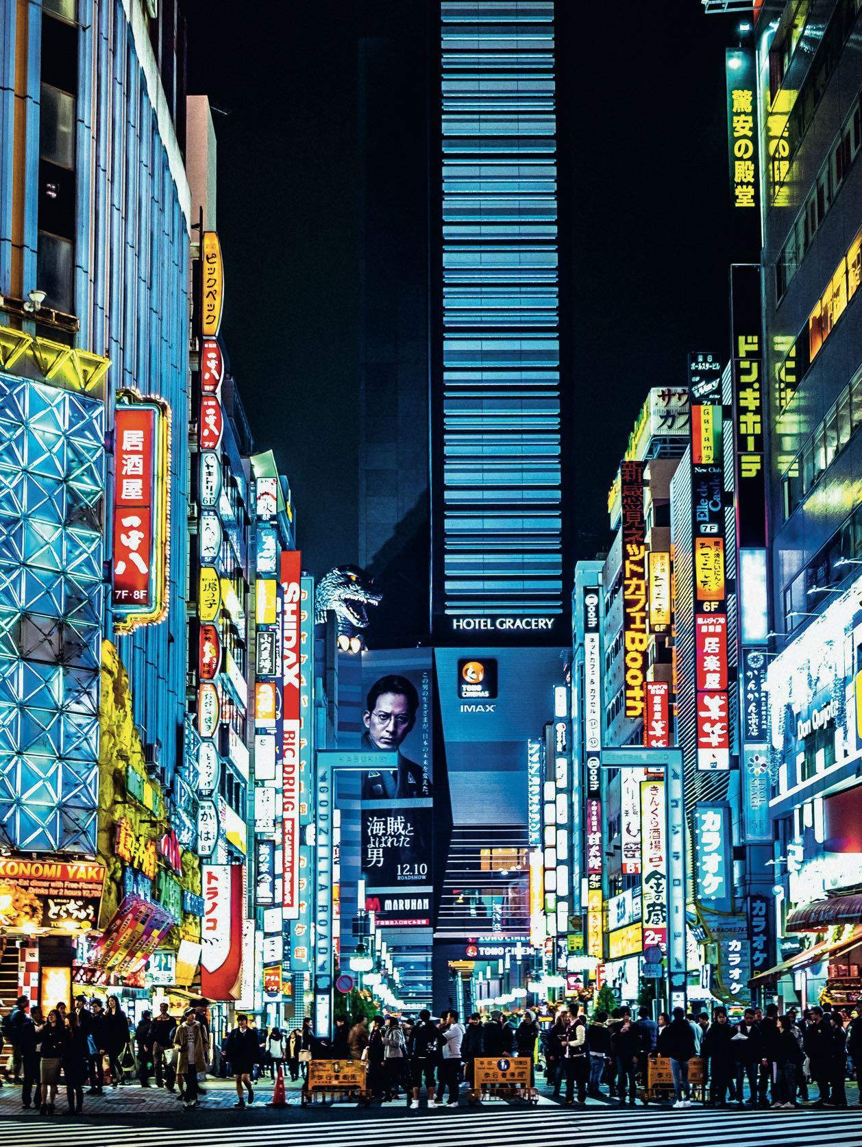 Página siguiente, rascacielos y luces de neón en el distrito Shinjuku de Tokio.