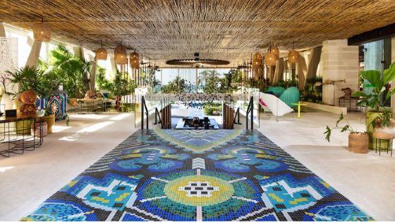 Nada más llegar al lobby, puedes admirar toda la cultura de su arquitectura, donde brilla con luz propia el camino Huichol, con más de 751 mil mosaicos colocados a mano que representan los elementos de la cultura wixárika. El pasillo llega hasta el océano, con una escalera diseñada para representar las su-