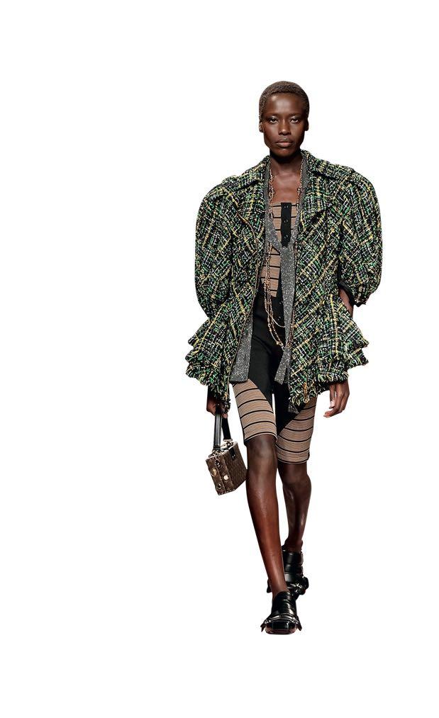 DEPORTIVO 1. Peacoat Dafne en terciopelo de algodón de canalé, de Sealup. 2. Cinturón de piel, de Salvatore Ferragamo. 3. Camisa y vaqueros acampanados, de Zimmermann. 4. Cronógrafo Omega Speedmaster Pilot. 5. Bailarinas Mary Jane en piel y grogrén, de Chanel. CLÁSICO Traje de crepé de lana, colección Dna, de Dolce&Gabbana. 2. Tank con correa de cocodrilo, modelo mini, de Cartier. 3. Gafas de sol de acetato de Lapima. 4. Carré, de Hermès. 5. Sandalias con tacón kitten, de Gianvito Rossi.