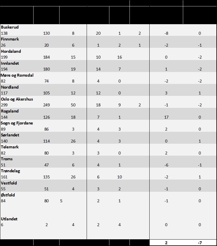 Nedenfor følger oversikt over medlemsmassen fordelt på hver lokalavdeling og endring fra 2024.