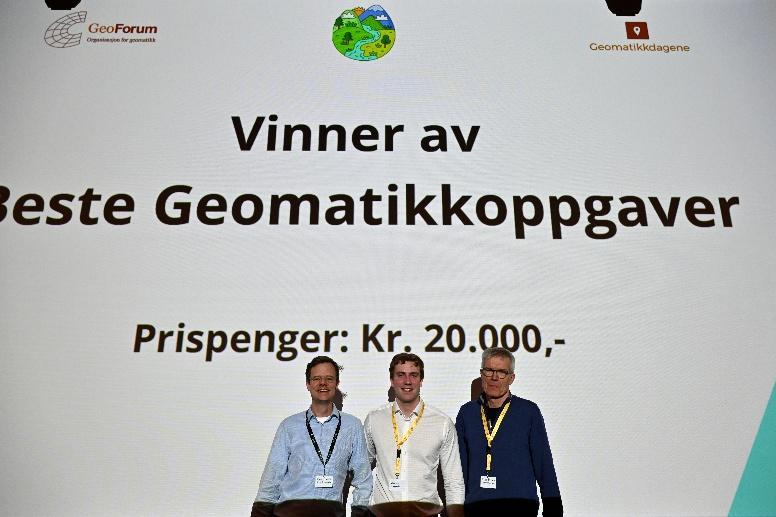 Beste geomatikkopgave 2025 kr 40 000. Spleiseprosjekt mellom Kartverket, Geomatikkdbedriftene og GeoForum betles med 1/3 på hver. Utdeles på Geomatikkdagene 2026.