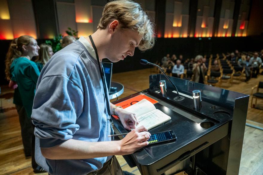 Der var både spænding og koncentration i salen, da elever onsdag eftermiddag trådte frem på scenen til årets gymnasiekonkurrence. Gymnasieelever fra hele landet havde fået til opgave at præsentere et bud på, hvordan skovrejsning kan understøtte Den Grønne Trepart.