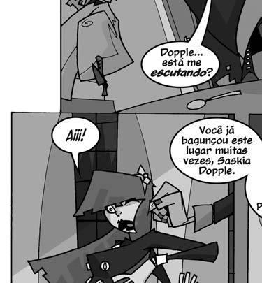 Sadie sabia que aquela não era a hora certa ou o lugar para se vingar. Mas quando chegasse o momento, iria atormentar a vida de Grimdyke. Enquanto isso, não havia mal nenhum em se divertir um pouco. Tranquila e cuidadosamente, Sadie colocou a mão na sua tigela, enquanto olhava inocentemente para o teto do refeitório. Pendurada nas vigas grossas de carvalho balançava a única lâmpada de toda a sala. Ela oscilava como uma forca, de um lado a outro, lançando sombras frias em um ambiente ainda mais gelado.