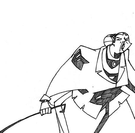 – Foi... Sa... Sa... Sa... – começou Grimdyke, que foi emudecida quando misteriosamente um ovo cozido atingiu a parte de trás de sua cabeça. Rimmer colocou-se de pé sobre a sola de suas grossas botas de couro e olhou para Grimdyke, que pôs a cabeça entre as mãos e desabou em lágrimas.