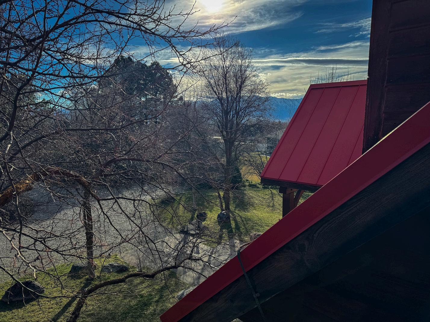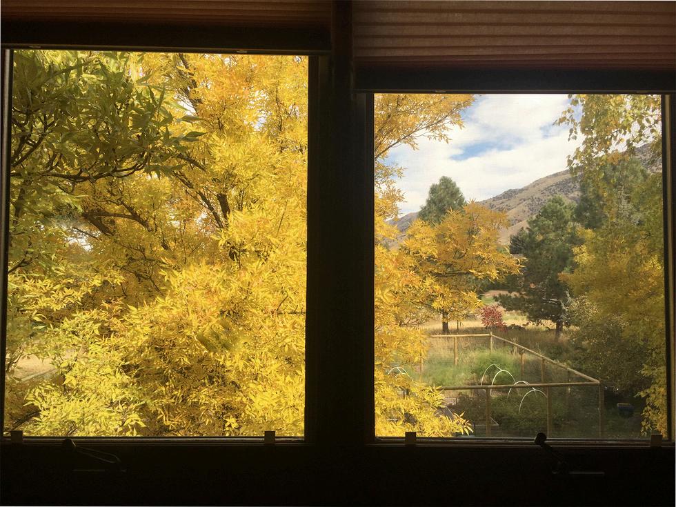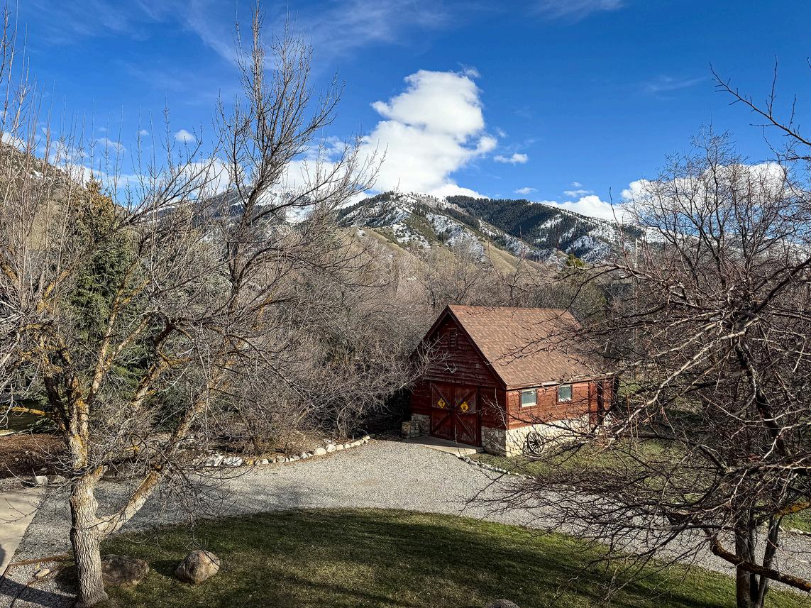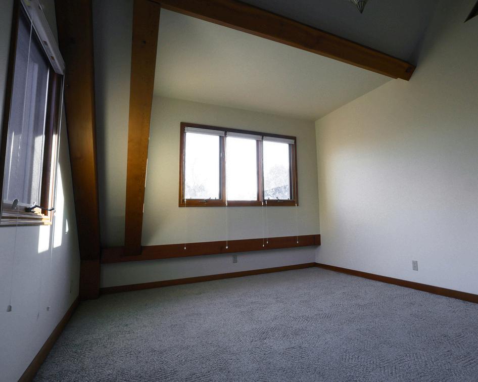 The upper-level west bedroom has a great view of the Wellsville Mountains.