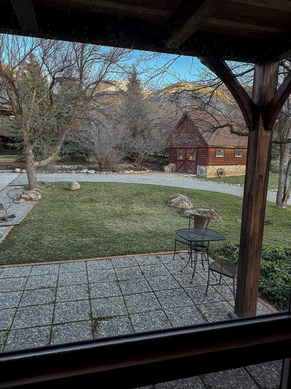 The east-side patio offers afternoon and evening shade.