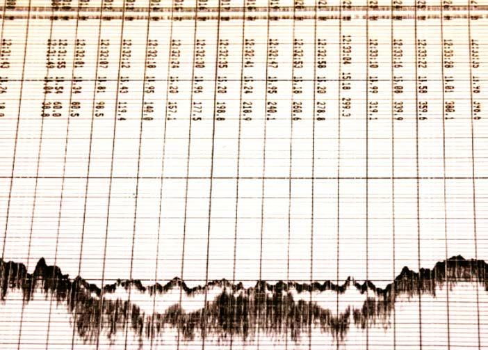 Figure 1: Paper single-beam echosounder echogram 200/24kHz (Fontes, 2010).