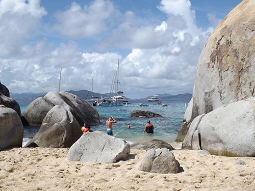 occasions were still alluring. Targeted must-sees will always be The Baths, whose gargantuan boulders on the coastline of Virgin Gorda leave visitors awe-struck and wide-eyed. It is still possible to maneuver inside the rock walls via small paths, often aided by rope ladders and wooden stairs that didn’t exist when I first came upon the rock formations in 1980. Other things have evolved at The Baths over the years, such as beach souvenir shops and small food stands, visits from cruise ship passengers and a host of beachgoers rather than a handful searching for a unique place to spread a blanket then wade in the water for some snorkeling.