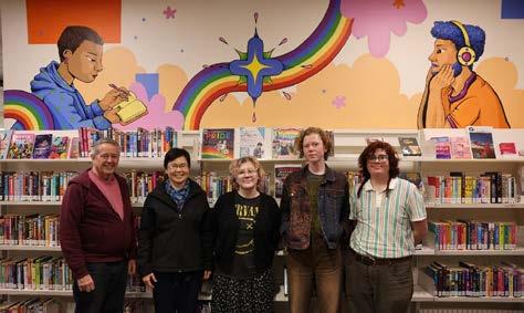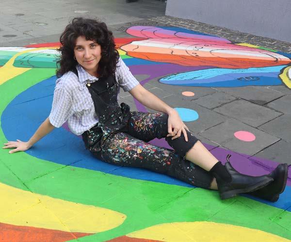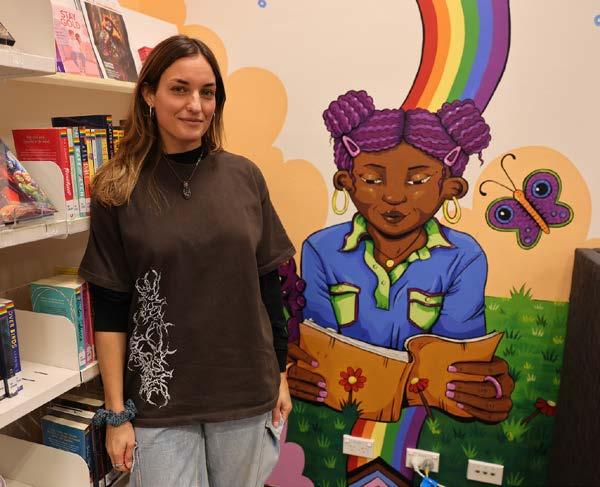 Above: Pride Mural in Clive James Library with artist Candela Alconada.