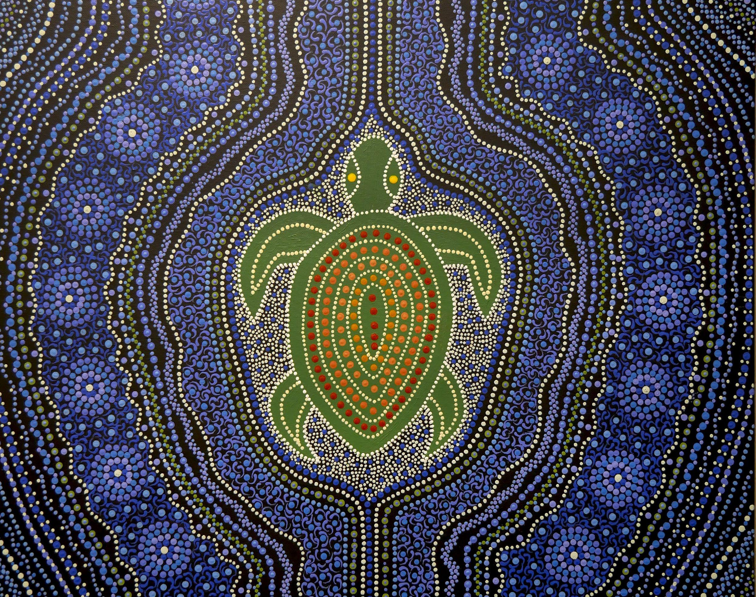 Annette Webb is a proud Dunghetti woman born in Sydney. Her artwork descends from her ancestors overlooking the land, lakes and rivers to protect and honour the traditional way of life today.
