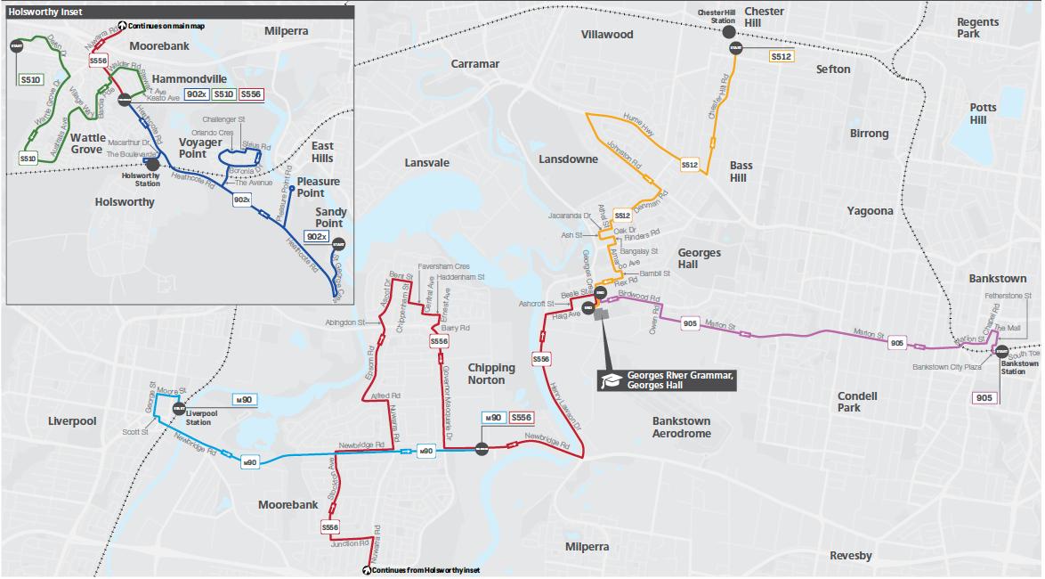 St Christopher’s Catholic Church, Heathcote Rd, Holsworthy (7:30) Market Plaza, Ernest Ave, Chipping Norton (7:50) Haig Ave after Georges Cres, Georges Hall (8:05)