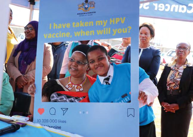 Left: A local health clinic in Eswatini hosts a human papillomavirus vaccination campaign; Right: Georgetown global health researchers from Georgetown University’s Lombardi Comprehensive Cancer Center and the CGHPI met with stakeholders in Eswatini to plan for implementation science grant proposals that will allow them to scale-up the availability of HPV screening.