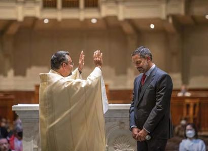 Peñalver receives a blessing at a Mass celebrating his inauguration as the president of Seattle University at St. James Cathedral in Seattle, Washington, on Sept. 23, 2021.