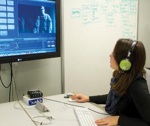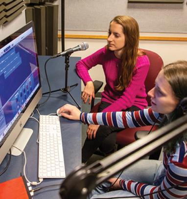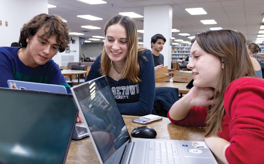 Cover image: Video journalism students collaborate on projects in Georgetown University Library’s digital media studio space.