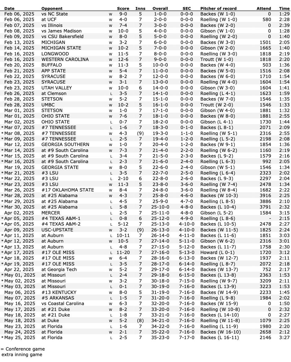 4/11 at #11 Kentucky* L, 3-11 (5)