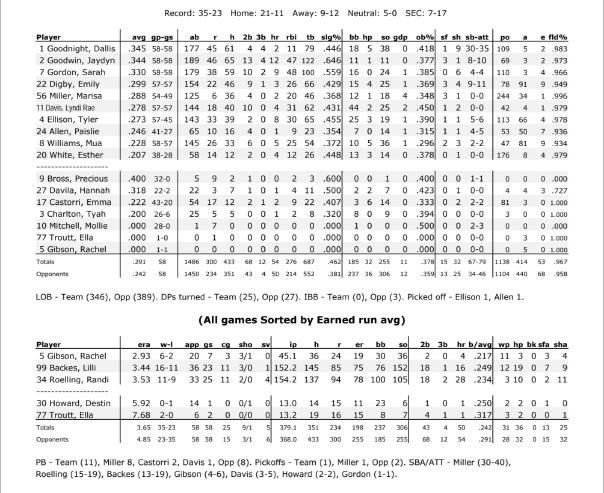 Graduate pitcher Mary Wilson Avant became the first-ever Bulldog to pitch back-to-back shutouts for Georgia in postseason play, shutting out No. 4 Florida in both games of the Gainesville Super Regional. The last time Florida was shut out in backto-back games was 2012. The Gators have only been shut out in back-to-back post season games once, back in 1998 in their first-ever NCAA Tournament appearance. Avant allowed only seven hits through 14 innings to the Gators, including nine strikeouts in game one. Avant's masterful performance in the circle secured Georgia a spot in the Women's College World Series.