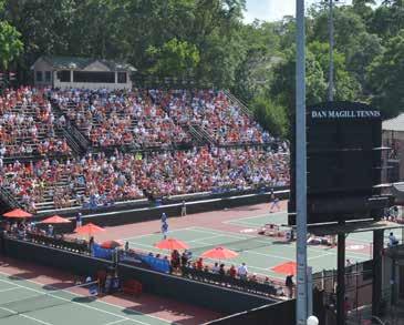 The newly renovated Dan Magill Tennis Complex was unveiled in February 2020. The $8.5 million renovation project marked the largest makeover for the complex since 2002. It features a new grandstand to Henry Feild Stadium with chair-back seating in the lower levels, permanent concession stands, restrooms and a new 1,750-square foot handicap-accessible press box. New umpire headquarters, as well as additional seating along the grass, can be seen at the complex.