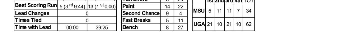 » Georgia led the SEC in turnover margin (+3.78) and steals (10.4 per game), was second in turnovers forced (20.2) and fourth in scoring defense (58.4 ppg) this season.