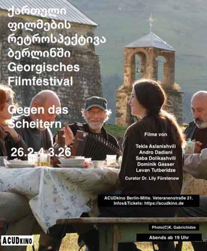 This is the third Georgian film retrospective to take place in Germany. The first one was or-ganized by me at the Werkstatt der Kulturen in 2015, followed by a retrospective featuring women in Georgian film, which we produced in Stuttgart in cooperation with Theater am Olgaeck.