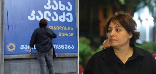 the sentence appears linked not to material damage, but to Khoshtaria’s political views and the symbolic nature of her protest against the ruling party.