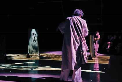 The production’s most conspicuous intervention is technological. AI-generated visuals and animation are active participants, occupying a status comparable to that of the actors. This decision