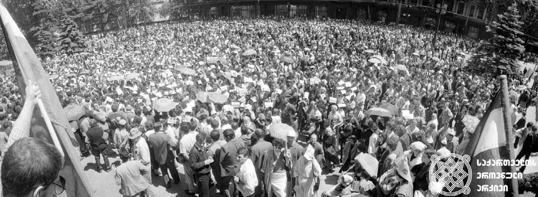 ago, the Georgian people were out in the streets with the intention of ridding the country of the Soviet regime and with a demand for Georgia’s independence, the inner sense of national freedom having been the prerequisite for those two politically overcharged claims.