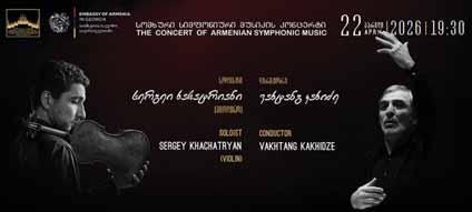 The Kakhidze Tbilisi Music and Cultural Center, in cooperation with the Embassy of Armenia in Georgia, will host an Armenian symphonic music concert in Tbilisi on April 22. The concert will feature the Tbilisi Symphony Orchestra conducted by Vakhtang Kakhidze, alongside internationally acclaimed violinist Sergey Khachatryan.