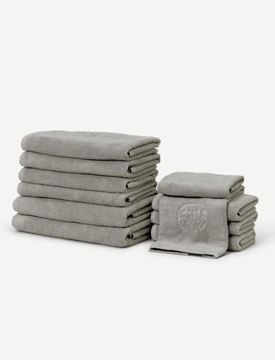 Når du giver håndklæder i gave, kan du vælge mellem fem forskellige prispakker og i to farver, Walnut eller Light Grey.