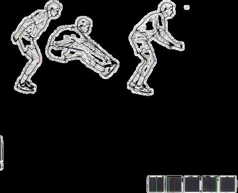 Ejecutando una acción parecida a un salto de altura en rodillo ventral, plantar en el suelo el pie que despegará con la ayuda del balanceo atrás y arriba de la pierna libre. Caída sobre la pierna libre al otro lado de la estera. Mediante esta acción, gira la parte frontal del cuerpo Dejar que la pierna colgada se balancee hacia arriba y en línea recta detrás del cuerpo Mantener los brazos abiertos hacia los lados para equilibrarse como si se estuvie-sen ejecutando movimientos de patinaje artístico sobre hielo.