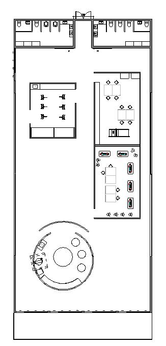 This separation is not accidental: it reflects the intention to maintain continuity with the central path that originates at The Lighthouse and traverses the complex. Thus, the architecture guides the passage of those who visit the space, framing a circulation that connects the communal with the organizational.