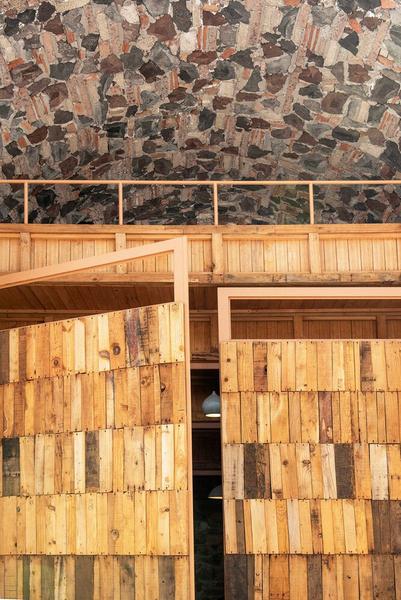 Los encofrados de construcción rescatados encuentran un nuevo propósito como estructuras de entrepisos y mobiliario integrado