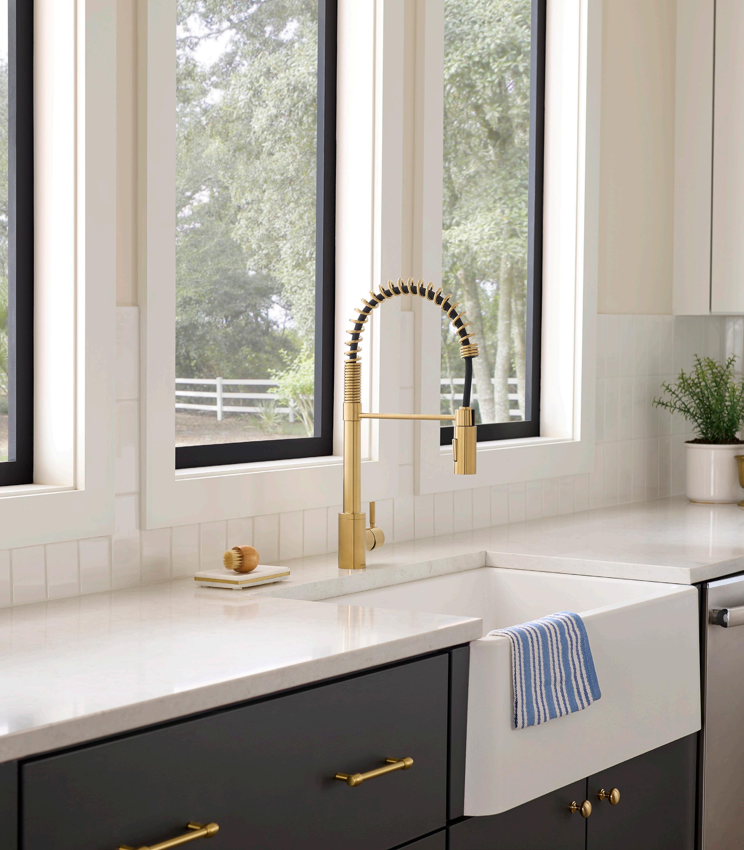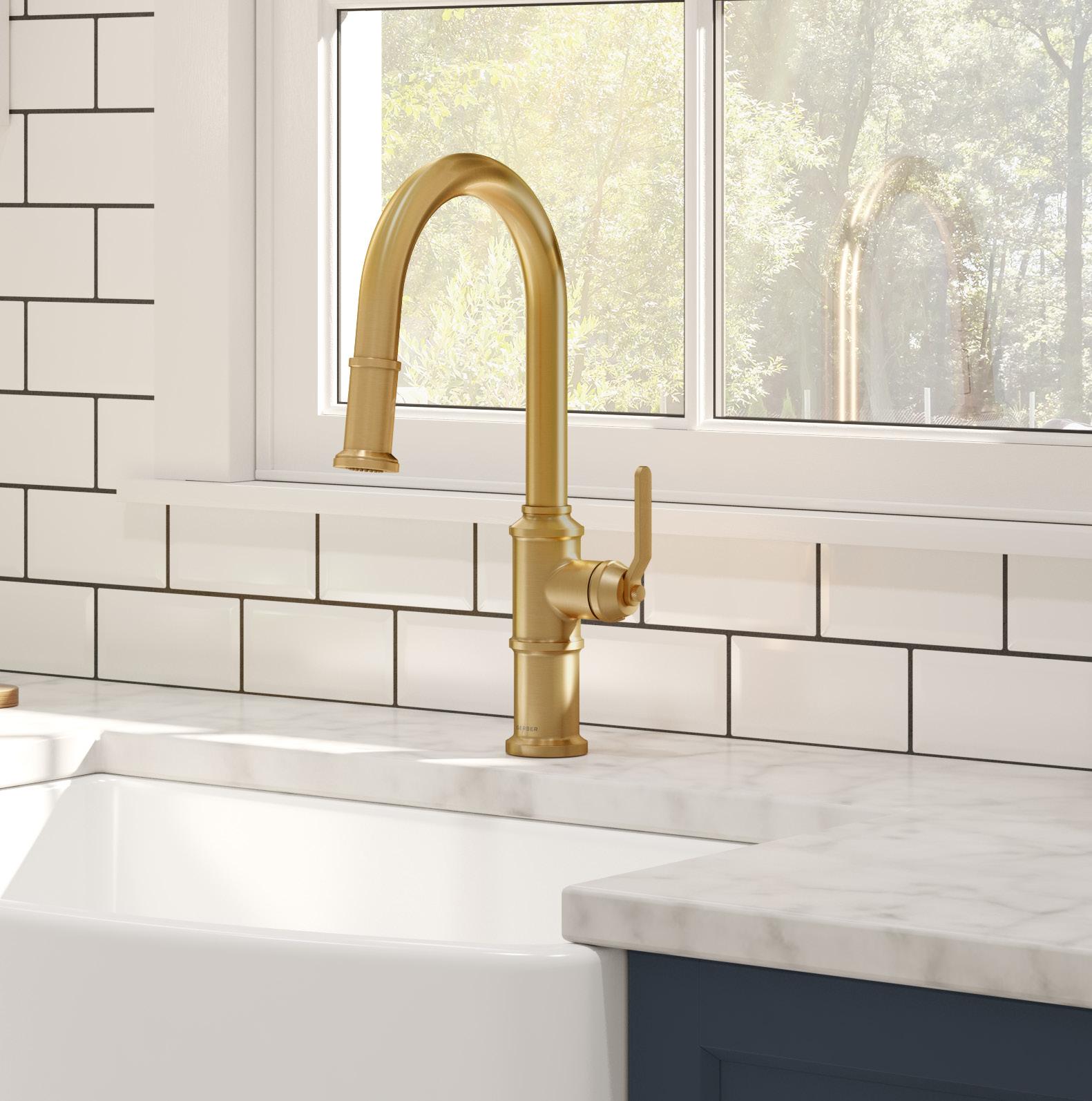 L’apparence rustique et raffinée de la collection KinzieMD pour la cuisine est inspirée des robinets d’époque, mais comprend des caractéristiques modernes. Elle donne à toute cuisine une atmosphère de loft urbain et s’agence parfaitement aux décors contemporains, modernes et champêtres.