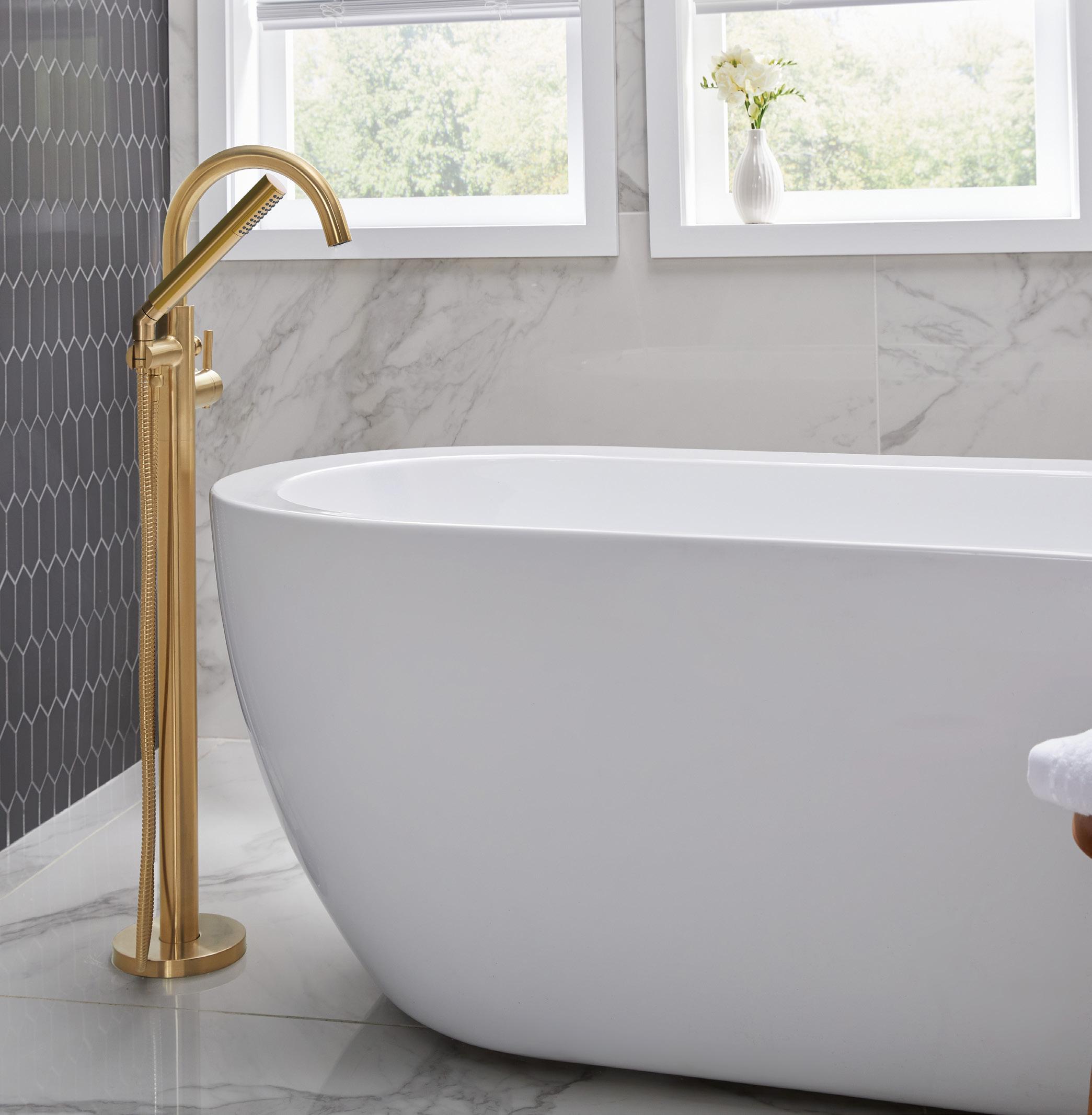 Les robinets de baignoire montés au sol de GerberMD s’agencent parfaitement aux baignoires autoportantes ainsi qu’aux collections de robinets de salle de bain de Gerber. Que votre pièce soit de style moderne ou traditionnel, ou qu’elle se situe quelque part entre les deux, ces robinets de baignoire montés au sol, offerts dans une variété de finis, l’enjoliveront assurément.