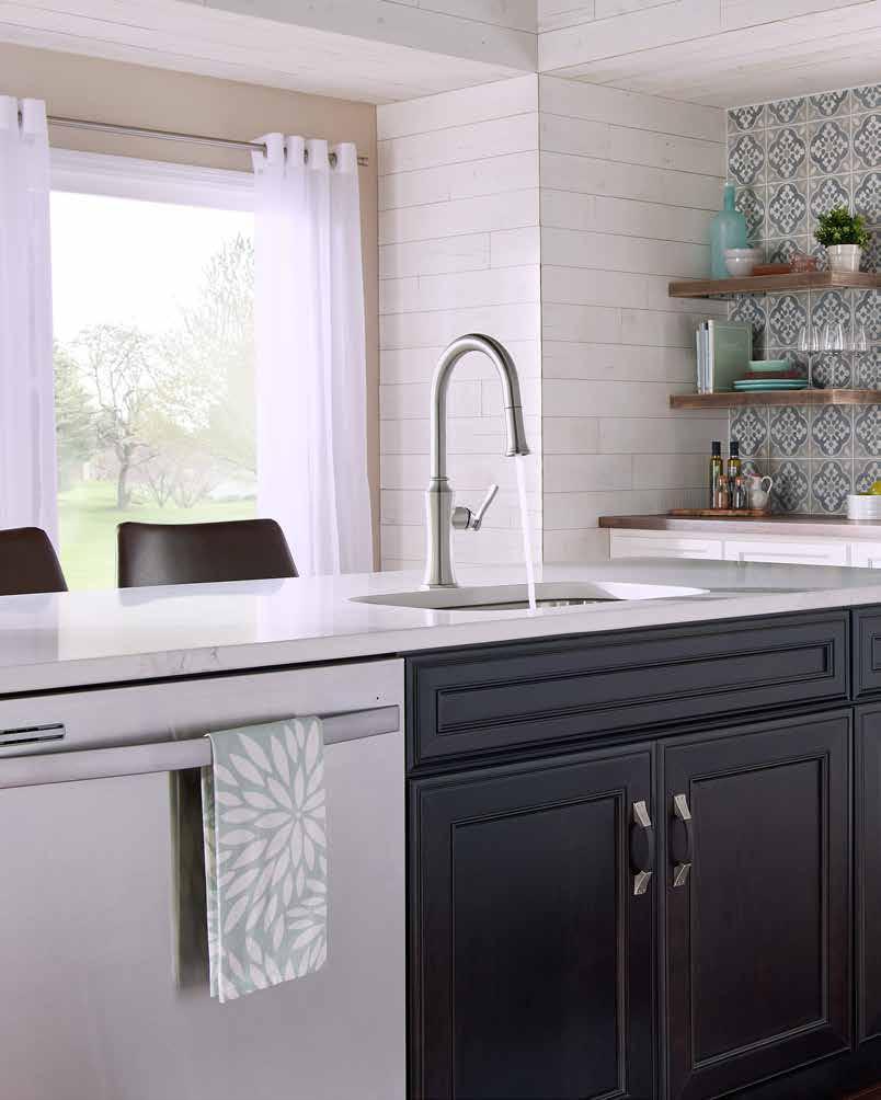 Mis en valeur par ses courbes fluides et prononcées, le style épuré et la conception polyvalente de la collection AntiochMD pour la cuisine s’intègrent naturellement dans n’importe quelle maison. Le style transitionnel des robinets leur confère une esthétique irrésistible qui s’harmonise au caractère existant des cuisines.