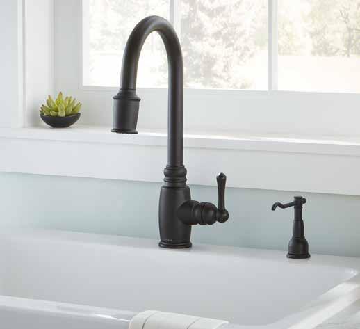 L’apparence rustique et raffinée de la collection KinzieMD est inspirée des robinets d’époque, mais comprend des caractéristiques modernes. Elle donne à toute cuisine une atmosphère de loft urbain et s’agence parfaitement aux décors contemporains, modernes et champêtres.