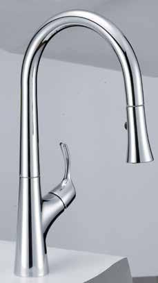 Page de gauche : Robinet de cuisine SeleneMD à une seule poignée à bec extensible/Chrome/D454012